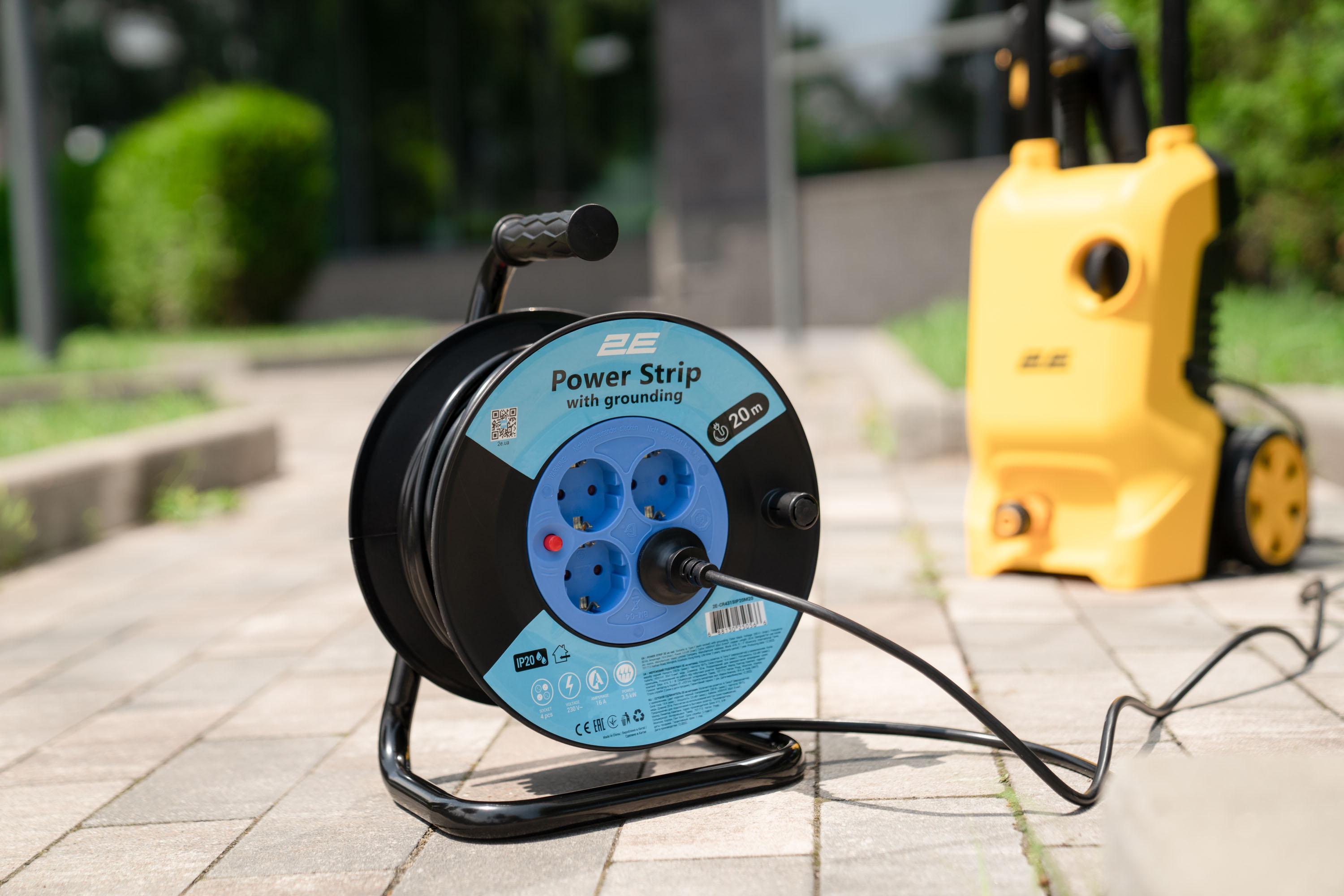 Описание 2E Мережевий подовжувач 4XSchuko на котушці, ІР20, 3G*1.5мм, 20м, чорний код товару 2E-CR4315IP20M20