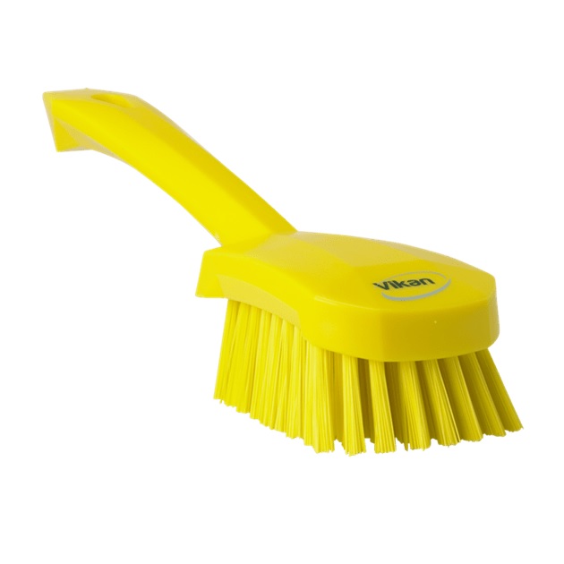 Щітка для миття з короткою ручкою ідеально підходить для легкої та ефективної щоденного прибирання бруду з конвеєрних стрічок, виробничих ліній, механізмів і робочих поверхонь.