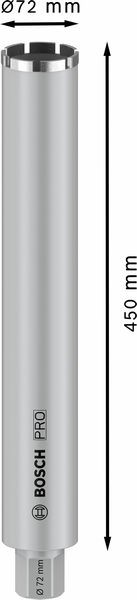 Описание Алмазный кольцевой резец BOSCH 72мм для бетона, 450мм, 7-10мм код товару 2608601738