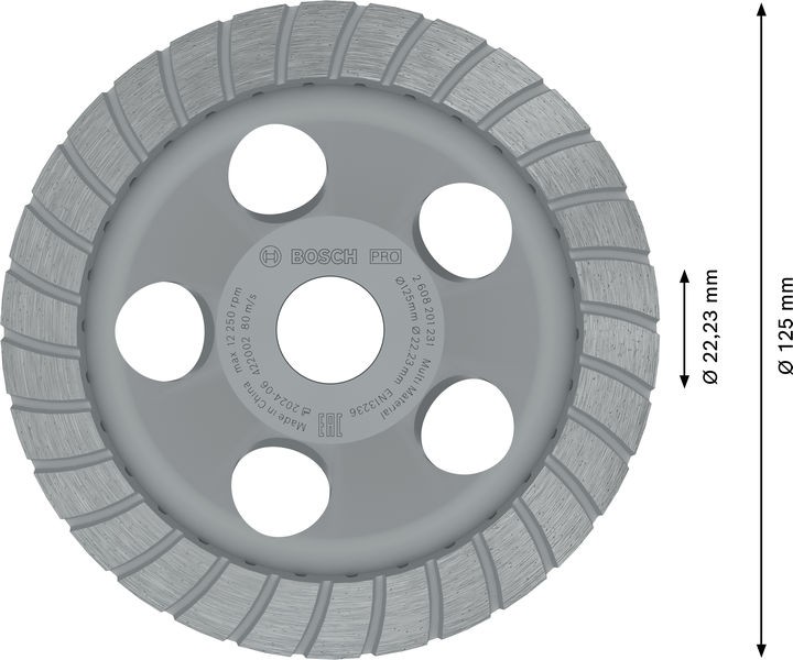 Характеристики Алмазный чашечный шлифовальный круг BOSCH Turbo 125 мм код товару 2608201231