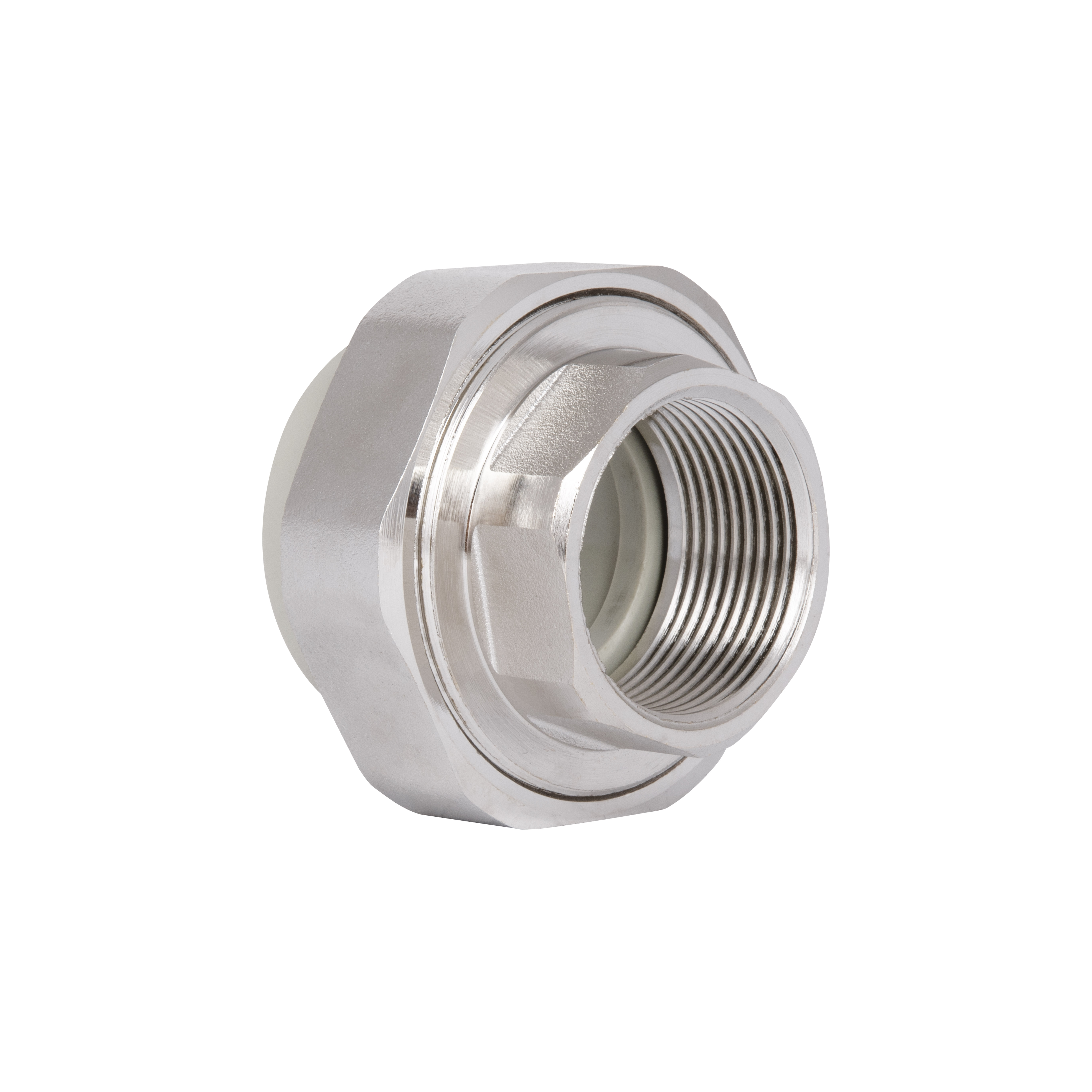 Американка PPR Blue Ocean 40х1 1/4" изготовлена из латуни, благодаря которой устойчива к высоким температурам, с внутренней резьбой с условным проходом 40 мм и диаметром резьбы 1 1/4". Конструкция изделия состоит из двух штуцеров, шестигранной гайки и прокладки для обеспечения герметичности соединения труб.