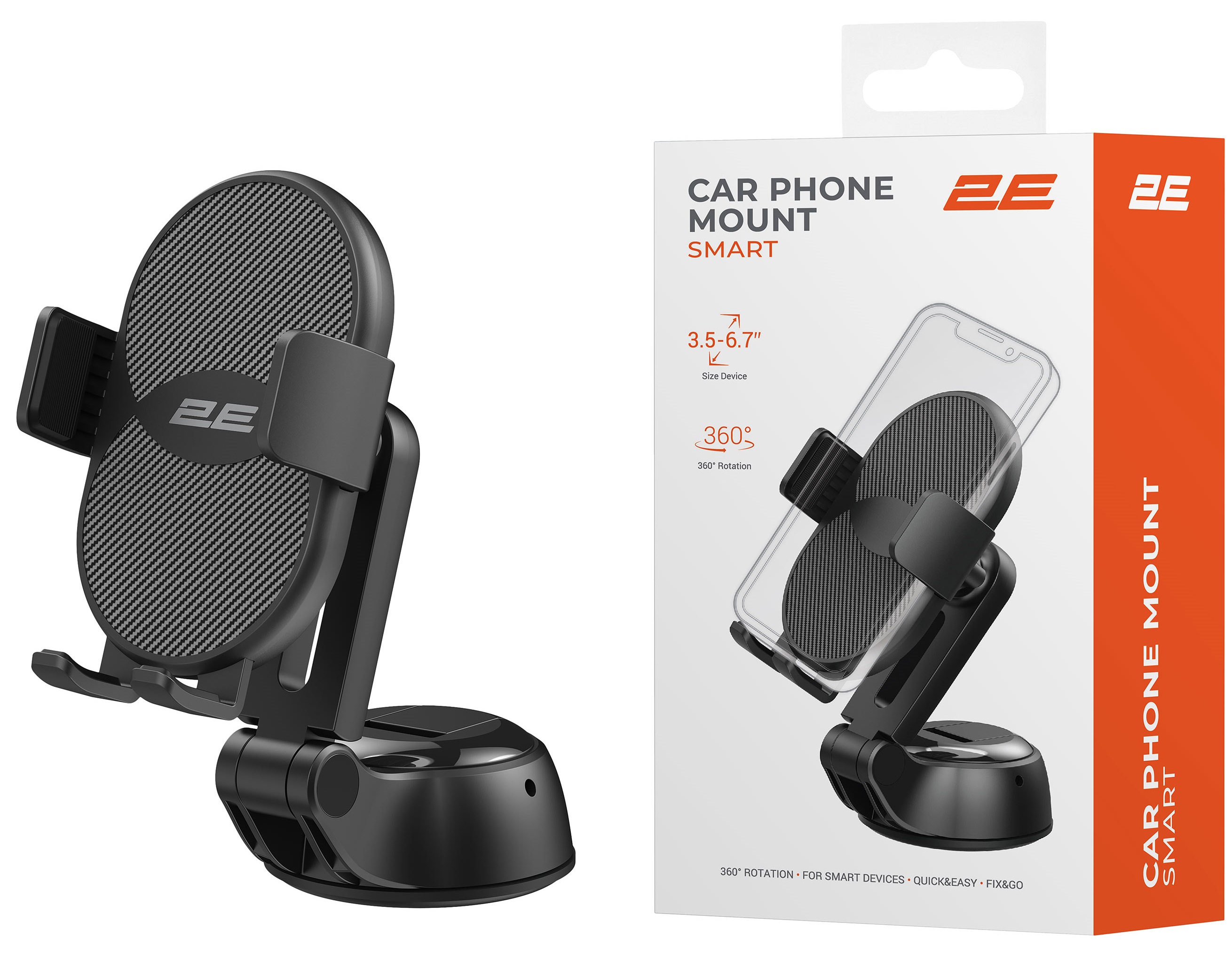 Універсальний автомобільний тримач 2Е Smart – кріплення, яке створено для вдалого розподілу вільного простору. Аксесуар можна кріпити на лобове скло або панель приладів. Тримач виготовлено з міцного пластику. Продумана конструкція. Оснащено механізмом обертання на 360°.
