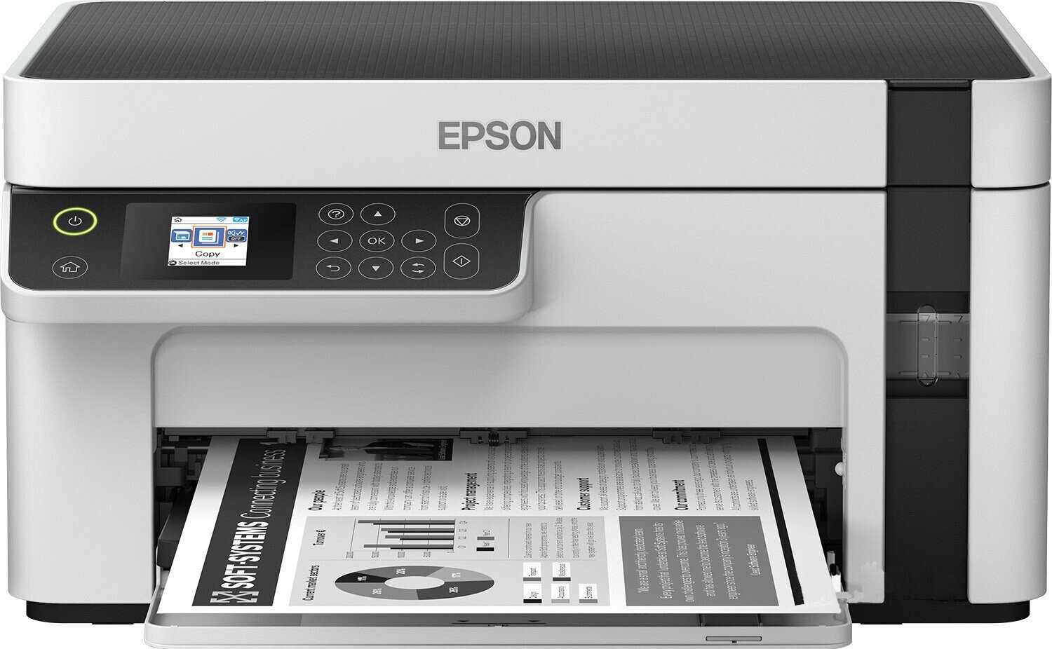 Epson M2120 - це компактний монохромний пристрій 3 в 1 (принтер-сканер-копір) з підтримкою підключення по Wi-Fi і Wi-Fi Direct. Як і інші моделі серії «Фабрика друку» БФП Epson M2120 використовує вбудовані ємності для чорнил, замість картриджів. Крім того, «Фабрика друку» використовує запатентовану п'єзоелектричну технологію Epson Micro Piezo, яка, на відміну від інших технологій друку, не вимагає нагріву чорнила, а значить, споживає значно менше електроенергії.
