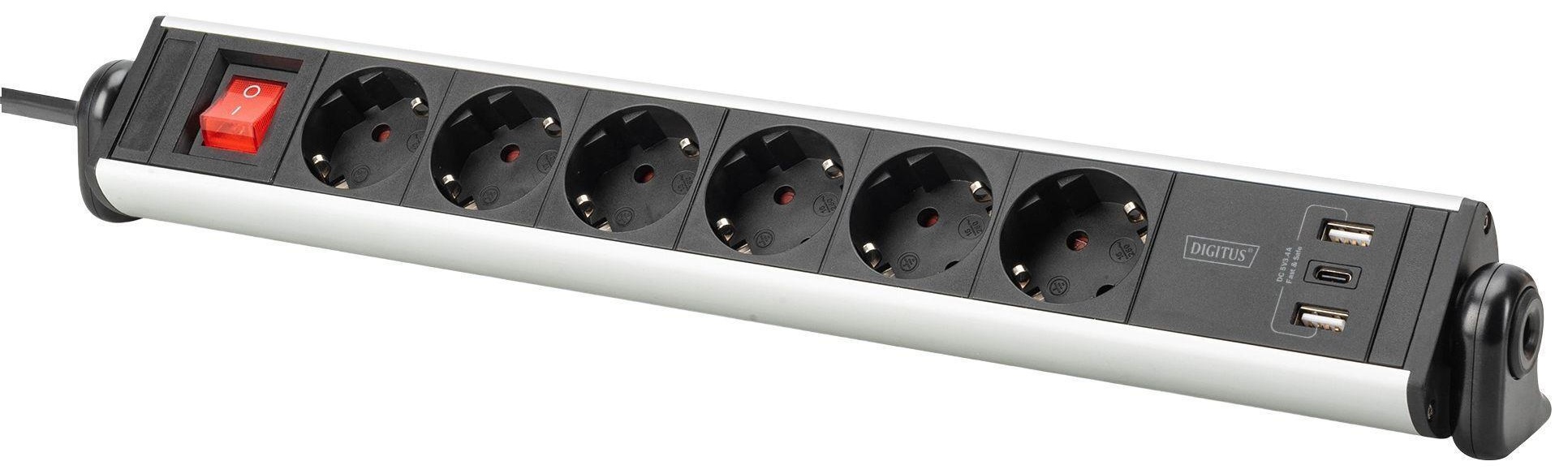 Блок розеток DIGITUS Office DA-70624 поєднує мережеві розетки та USB-порти в одному компактному корпусі. Шість розеток Schuko з кутовим розташуванням дозволяють зручно підключати різні типи вилок. Три USB-порти забезпечують заряджання мобільних пристроїв без окремих адаптерів. Алюмінієвий корпус доповнює сучасний вигляд робочого простору. Вбудований вимикач підвищує зручність щоденного використання.