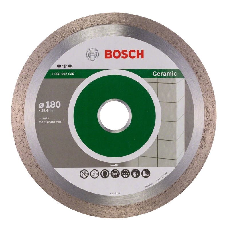 Служат до 1,8 раза дольше отрезного круга Bosch Standard for Ceramic - Профессионалы, регулярно выполняющие резку керамики, например плиточники, высоко оценят долговечность алмазного отрезного круга PRO Ceramic. Высококачественная алмазная крошка на металлической основе премиум-класса обеспечивает отличную производительность и прочность круга PRO Ceramic. Его конструкция предназначена специально для резки керамической плитки, что обеспечивает высокое качество работы. С отверстием 25,4 мм для пил для отрезки металла Удлиненная выносливость при резке плитки С отверстием 25,4 мм для пил для отрезки металла vs Standard for Ceramic (2608602538) Испытано в лабораториях Bosch в соответствии со стандартными процедурами Bosch Служат до 1,8 раза дольше отрезного круга Bosch Standard for Ceramic С отверстием 25,4 мм для пил для отрезки металла Для резки керамической настенной и напольной керамической плитки, используемой в ванных комнатах и кухнях Высокая эффективность для плиточников: удлиненная выносливость