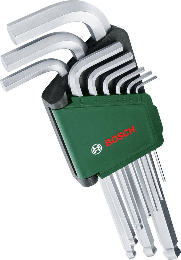 Описание Bosch Ключі шестигранні, набір 9шт, кулястий наконечник, 1.5-10мм, CrV код товару 1.600.A03.2V1