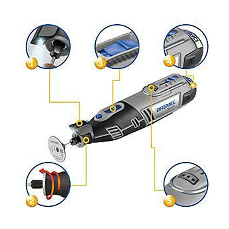 Удобство пользователяБеспроводной многофункциональный инструмент для продвинутых домашних мастеровПродуманный стартовый набор для выполнения любых внутренних и наружных работ по домуНикаких проводов — инструмент можно использовать где угодно и выполнять любые внутренние и наружные работы, связанные с резьбой по дереву, гравировкой, фрезерованием, резкой, абразивной обработкой, шлифованием, заточкой, полированием и чисткойВидеть всё вплоть до мельчайших деталей. Светодиодная подсветка позволяет работать в плохо освещенных местах и повышает точность выполнения любых работ.