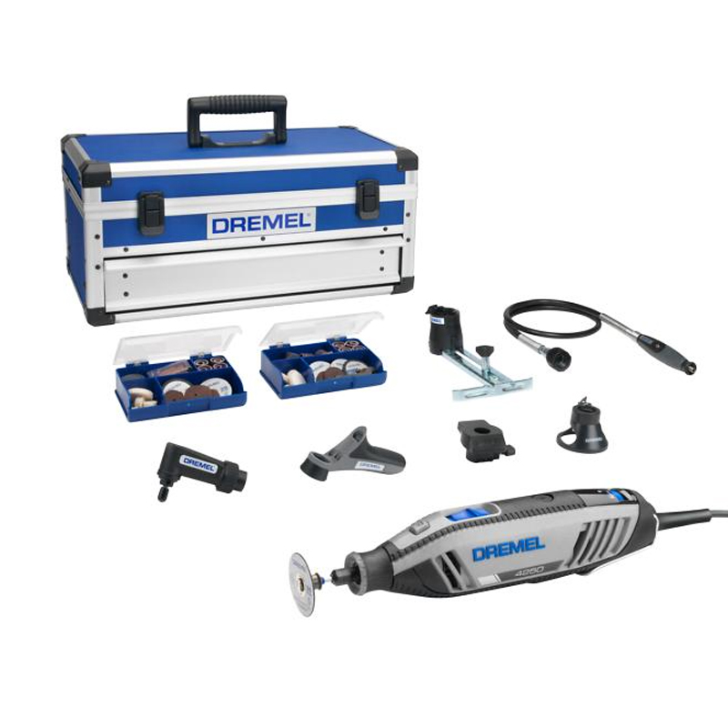 Удобство пользователяСамый производительный сетевой многофункциональный инструмент для решения сложных задач без ограничений времени работы.Самая богатая комплектация Dremel 4250; 128 насадок и 6 приставок открывают для вас все возможности DremelОбеспечьте точность при выполнении самых сложных задач и упростите работу над творческими проектами.Храните все свои принадлежности и насадки в порядке в просторном и вместительном кейсе для хранения.