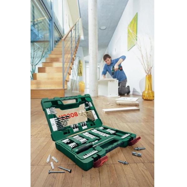 Комплексный набор, в который входят сверла, насадки для завинчивания, торцевые ключи, универсальный магнитный держатель и ручная отвертка-трещотка для резьбовых соединений. 11 сверл по металлу с покрытием из нитрида титана, 11 сверл по кирпичной кладке с твердосплавным наконечником и 8 сверл по дереву с центровочным наконечником. Надежные магнитные насадки для завинчивания винтов большинства распространенных типов и размеров. Отвертка с трещоткой для легкого завинчивания винтов в узких местах. Футляр V-Line для безопасного и аккуратного хранения.