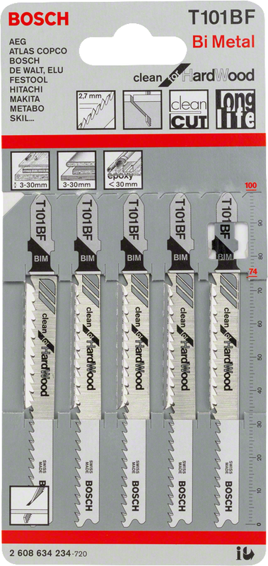 Описание BOSCH Полотно для лобзиков PRO Hardwood Clean T101BF код товару 3165140091855