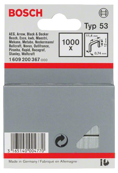 Характеристики Bosch Скоби 12мм ТИП 53, 1000 шт код товару 1.609.200.367