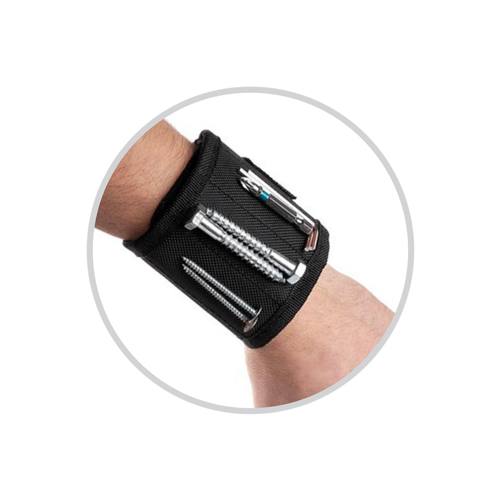 Благодаря встроенным магнитам, этот браслет надежно удерживает саморезы, гайки, гвозди, биты, сверла и другие мелкие металлические элементы, избавляя вас от необходимости постоянно искать их в карманах, разбрасывать по поверхности или держать в руках.