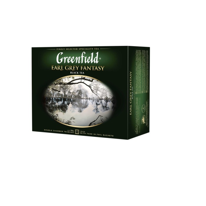 Чорний чай з бергамотом. В елегантному букеті Greenfield Earl Grey Fantasy химерно переплітаються аромати апельсина, лимона і бергамота, які підкреслюють виразний смак чорного чаю з плантацій Ува і надають особливу витонченість цій витонченої композиції. Фасовка: 50 пакетиків з ярликами в індивідуальній упаковці.