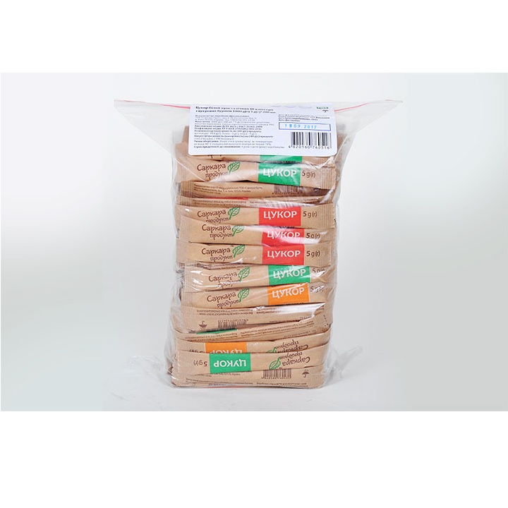 Характеристики Цукор-пісок в стіках ( 5г х 200 шт,) 1,0кг, zip-пакет пісок (Im-off) код товару 16014