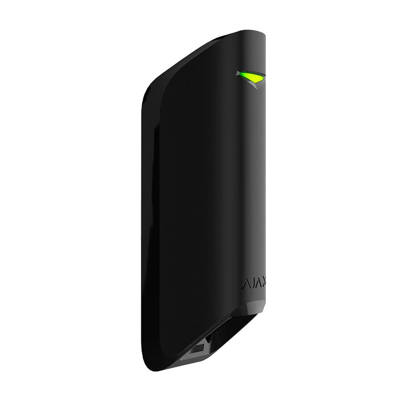 Датчик-штора Ajax MotionProtect Curtain чорний створює невидиму оку штору, оберігаючи двері, вікна, певні зони і дозволяє виявити спробу вторгнення на територію, що охороняється. Зауважує зловмисника на відстані до 15 метрів, як тільки той з'являється в зоні детекції датчика. Пристрій одночасно використовує два PIR-сенсора, що дозволяє успішно визначити як повільне, підкрадається рух, так і швидкий біг. MotionProtect Curtain підтримує радіозв'язок з хабом на відстані до 1700 метрів.