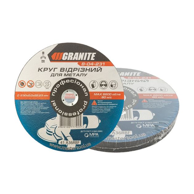 Описание Отрезной абразивный диск для металла GRANITE 230x2.0x22.2 мм, 10 шт код товару 8-04-231PC