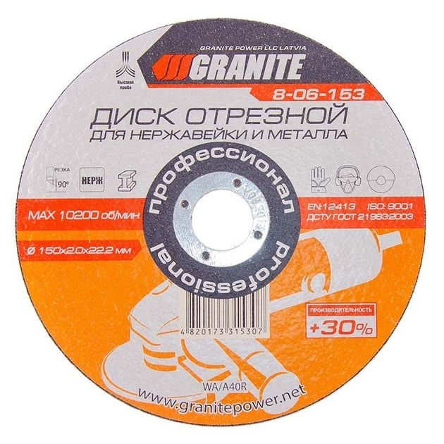 Описание Отрезной абразивный диск GRANITE PROFI +30 150х2.0х22.2 мм для металла код товару 8-06-153