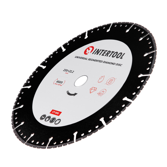 Характеристики Диск алмазний універсальний сегментний 230*22.2 на кутову шліфувальну машину код товару CT-1012