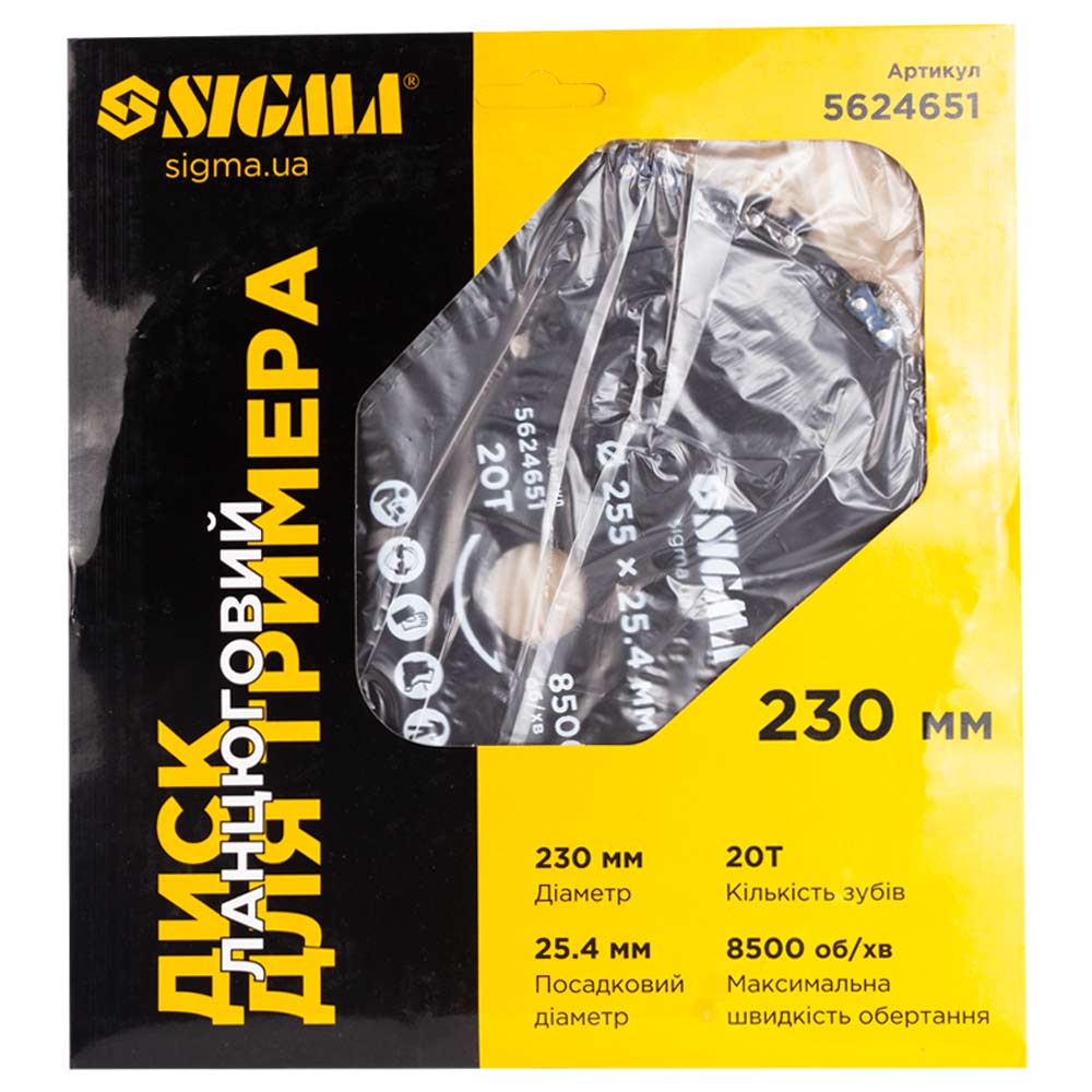 Характеристики Цепной диск для триммера 230*25.4мм 20Т SIGMA (5624651) код товару 5624651