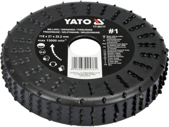 Описание Диск-фреза YATO 118x21x22,2 мм, шлифовальный по дереву и ПВХ код товару YT-59177