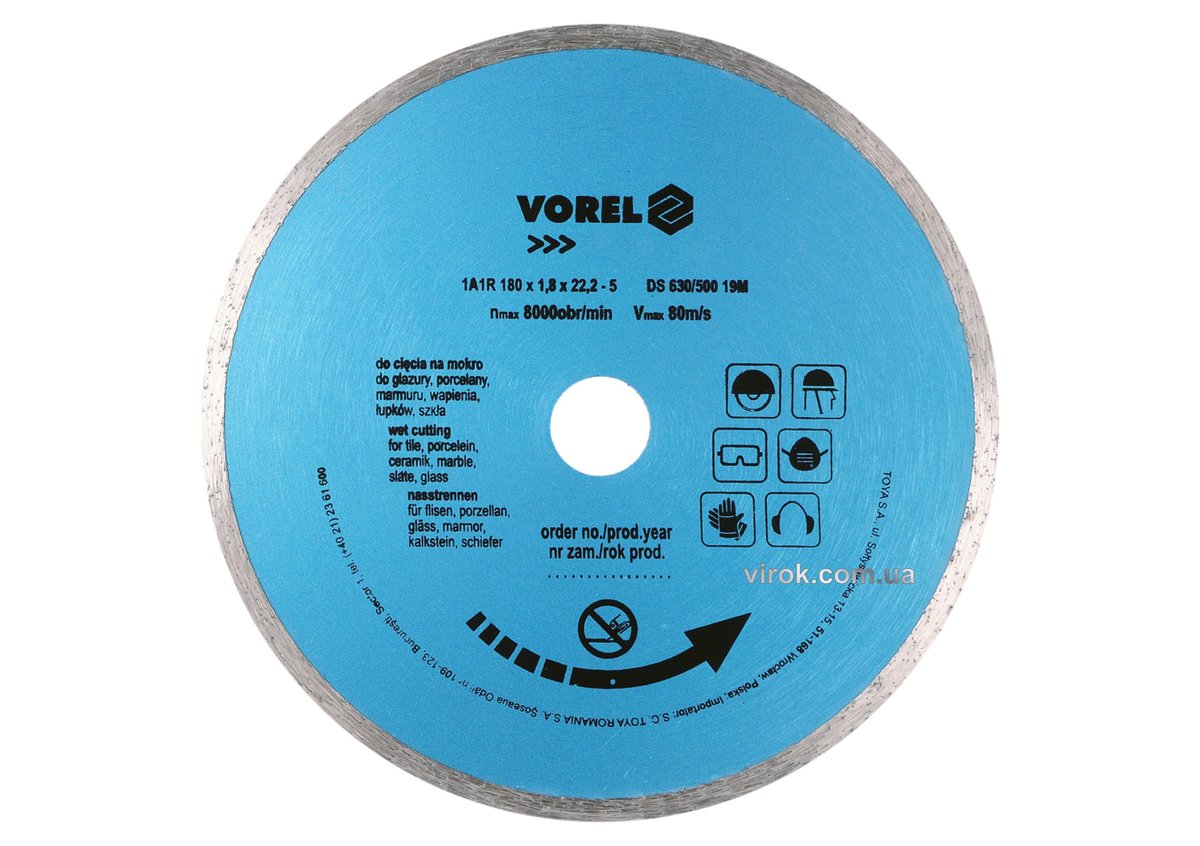 Описание Диск відрізний алмазний суцільний VOREL : Ø= 230 мм [10/40] код товару 08735