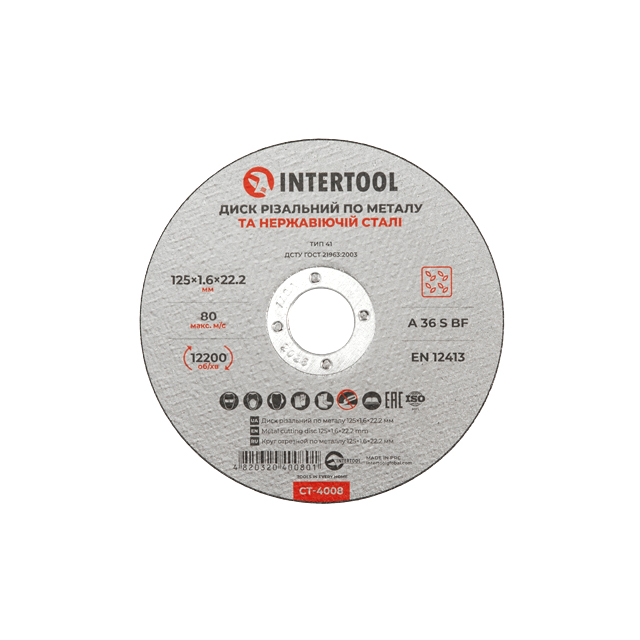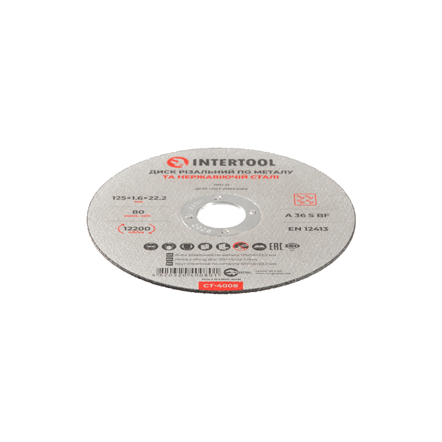 Характеристики Диск отрезной по металлу 125 мм INTERTOOL CT-4008 код товару CT-4008