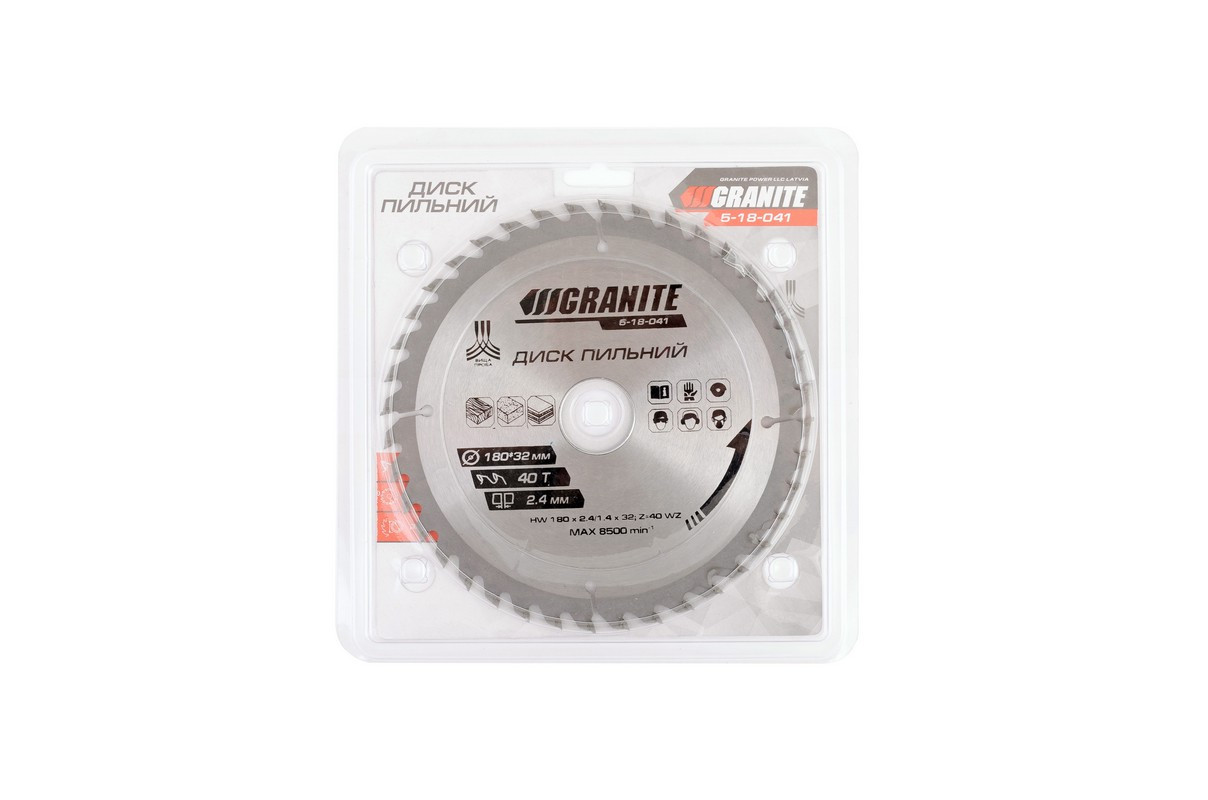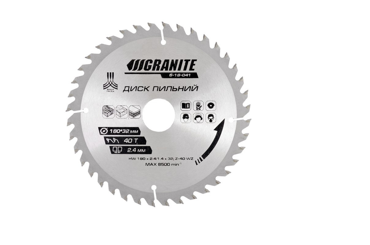 Диск пильный GRANITE 180х32х40Т для дерева, адаптер 32-30, 8400 об/мин код товару 5-18-041 Granite