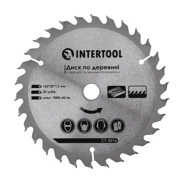 Описание Пильный диск по дереву 160x20x1,5 мм, 30 зубьев INTERTOOL CT-3016 код товару CT-3016