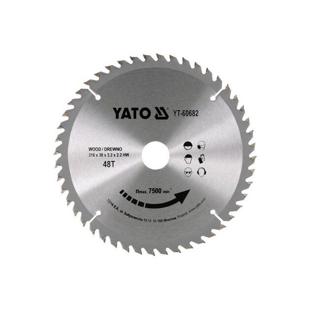 Описание Диск пильный по дереву 216х30х3,2 мм, 40 зубьев YATO (YT-60682) код товару YT-60682