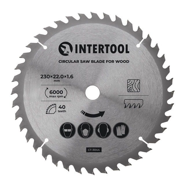 Описание Пильный диск для дерева 230 мм, 40 зубьев, INTERTOOL CT-3044 код товару CT-3044