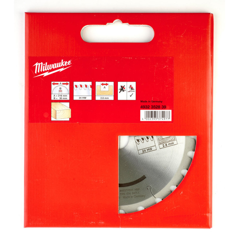 Характеристики Диск пильный по дереву для торцевых пил MILWAUKEE, Ø216х30х2,8мм, 24 зуб. код товару 4932352839