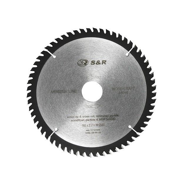 Описание Пила дисковая S&R Meister Wood Craft 185x30/16/20x2,2 мм 60 зубьев код товару 238060185