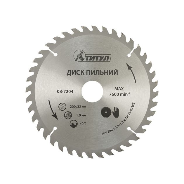 Характеристики Пильный диск ТИТУЛ 200х32х40Т с твердосплавными напайками, адаптер 32-30/32-25.4 код товару 08-7204