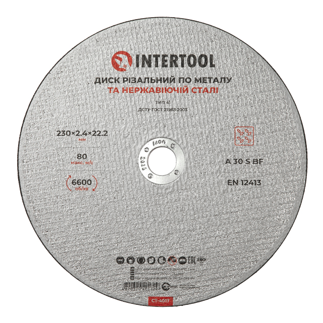 Характеристики Диск різальний по металу 230*2.4*22.2 мм код товару CT-4017