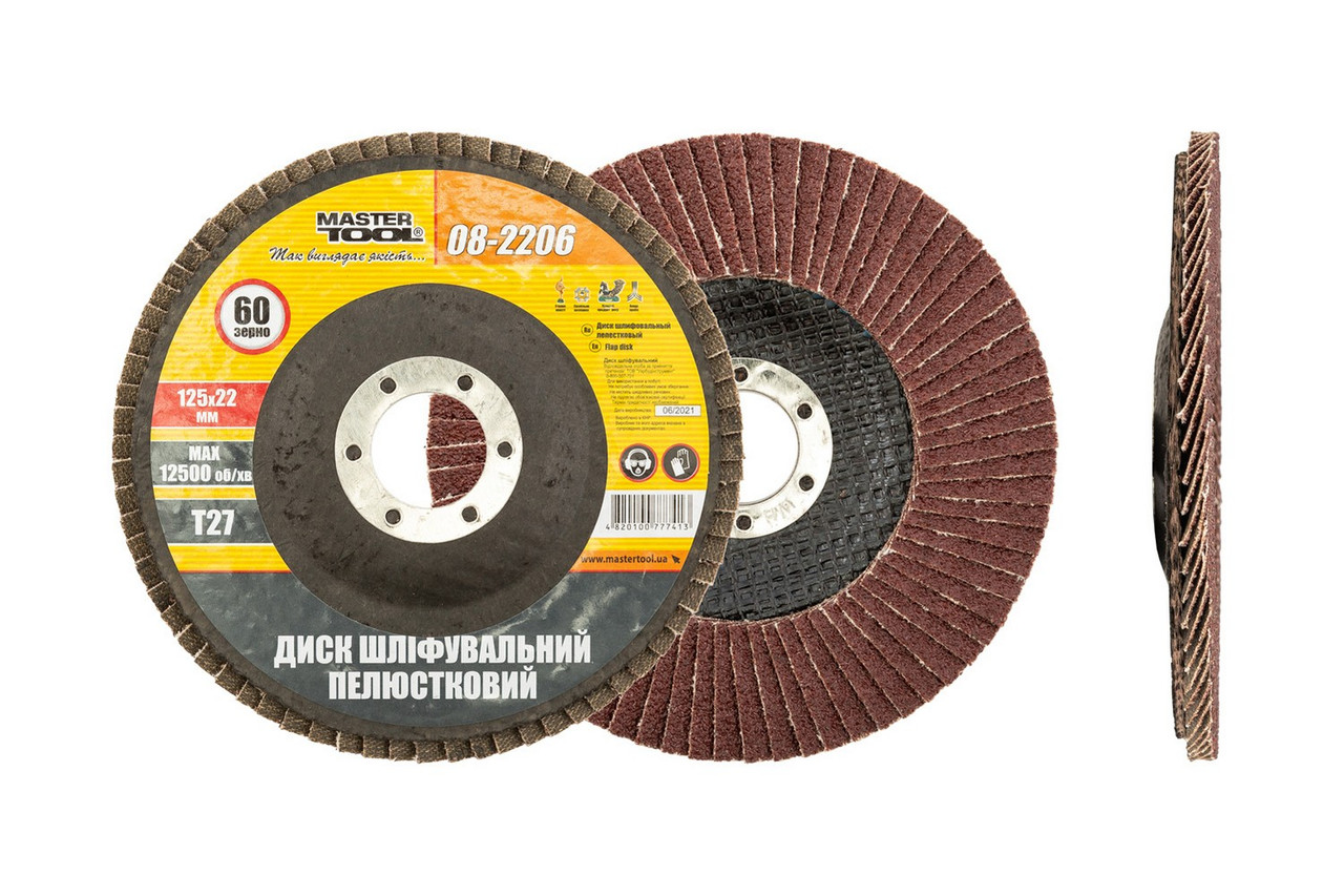 Шлифовальный лепестковый диск MASTERTOOL Т27 125х22 мм зерно 60 код товару 08-2206 Master Tool, Mastertool