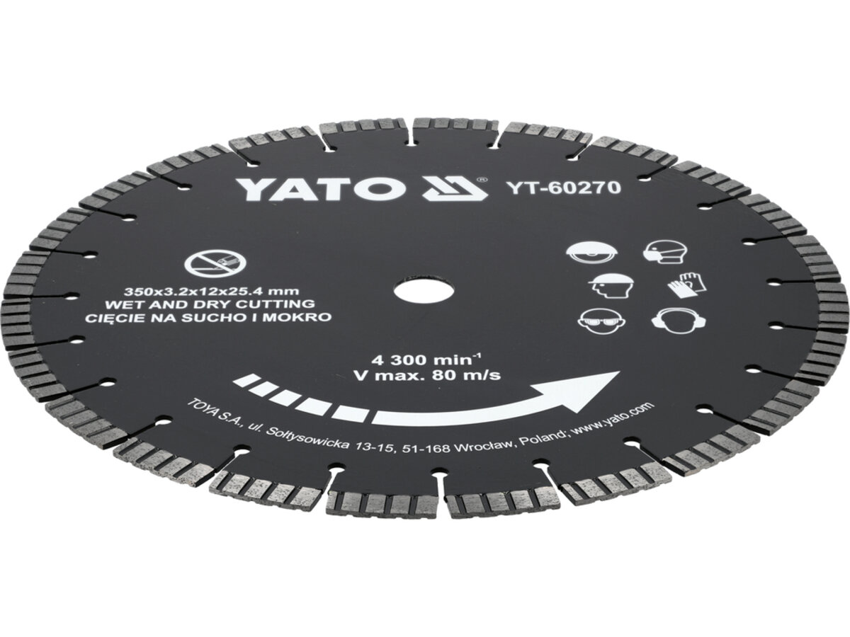 Описание Диск відрізний сегментний алмазний по бетону YATO Ø= 350/25,4x3.2 мм, в мокрому і сухому режимі [10] код товару YT-60270