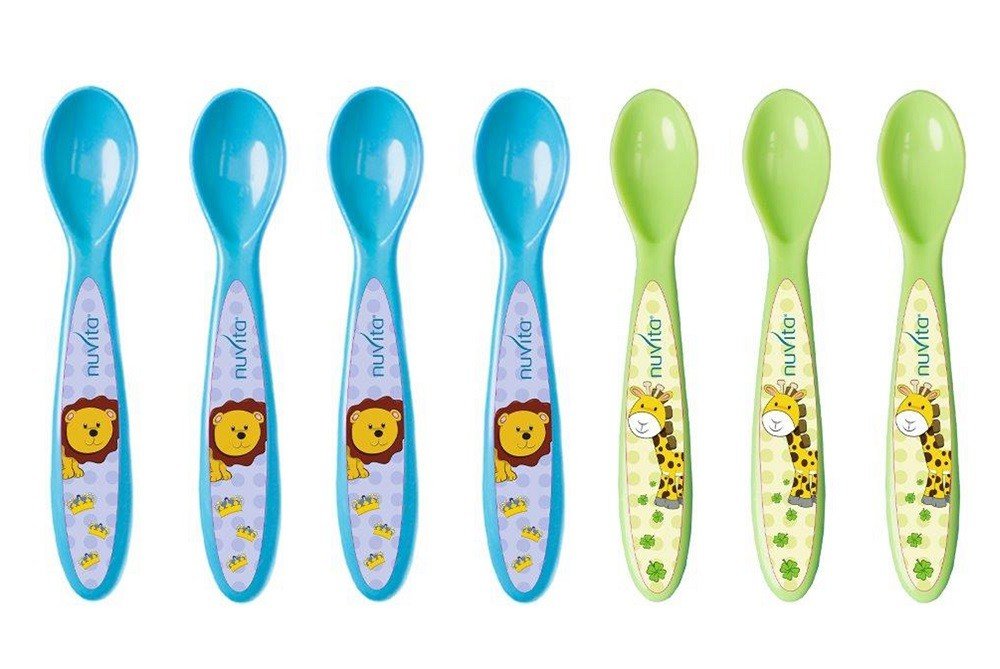 Італійський бренд Nuvita пропонує яскравий набір ложечок для дитячого харчування. У комплекті 7 ложечок: 4 блакитні з малюнком лева і 3 зелені з малюнком жирафа. Прилади оптимального розміру та зручної форми для маленьких дитячих ручок. Вони вироблені із безпечного пластику, що не містить бісфенол-А. Ложечки можна мити у посудомийній машині. Для малюків з 6 місяців.