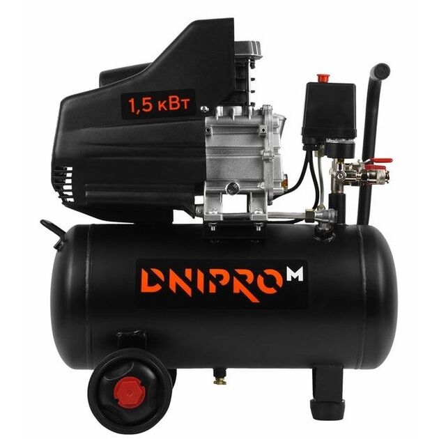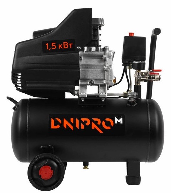 Електромотор і нагнітальний механізм з’єднані напряму, завдяки чому компресор Dnipro-M AC-24 займає менше місця. Пряма передача також підвищує ККД двигуна.