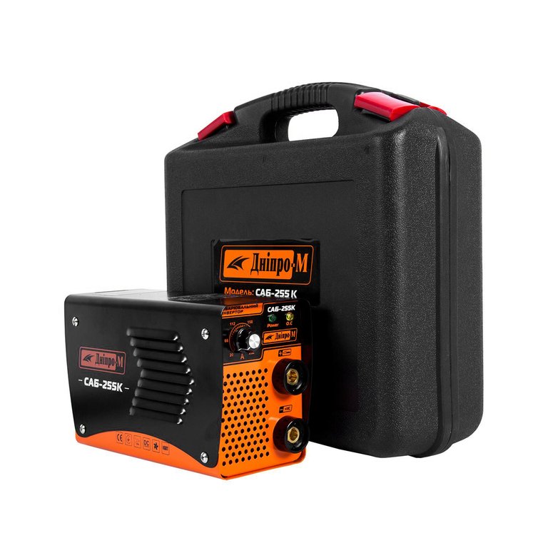 Зварювальний інвертор САБ-255К – досить потужний, функціональний і максимально простий у використанні апарат. Найбільш доступний за ціною, серед асортименту зварювальних інверторів торгової марки, тому стане незамінним для побутового використання. Допустима сила струму варіюється від 20 до 250А, що дозволяє використовувати електрод діаметром 4 мм. Електродом до 3 мм можна працювати безперервно, 4 мм – допустимо 35 електродів без вимикання. Апарат призначений для зварювання металу товщиною до 12 мм і різання заготовок до 6 мм.