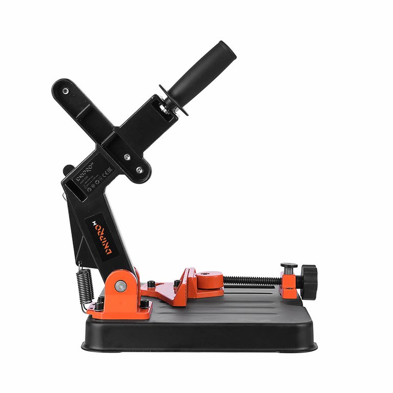 Така стійка використовується в роботі з КШМ 180/230 мм. Широка підошва розміром 295х295 мм сприяє зручному закріпленню і найбільш комфортній роботі. Крім того, за допомогою вбудованих лещат з функцією швидкого затиску є можливість швидкої та надійної фіксації матеріалу, що обробляється.