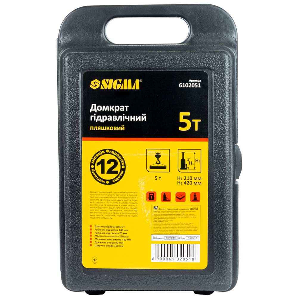 Описание Домкрат гидравлический бутылочный 5т H 210-420мм (кейс) SIGMA (6102051) код товару TR6102051