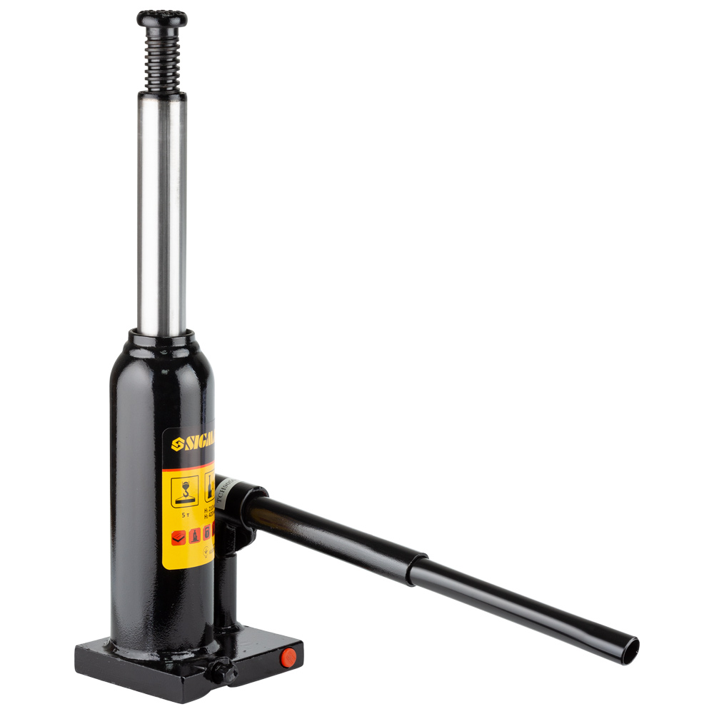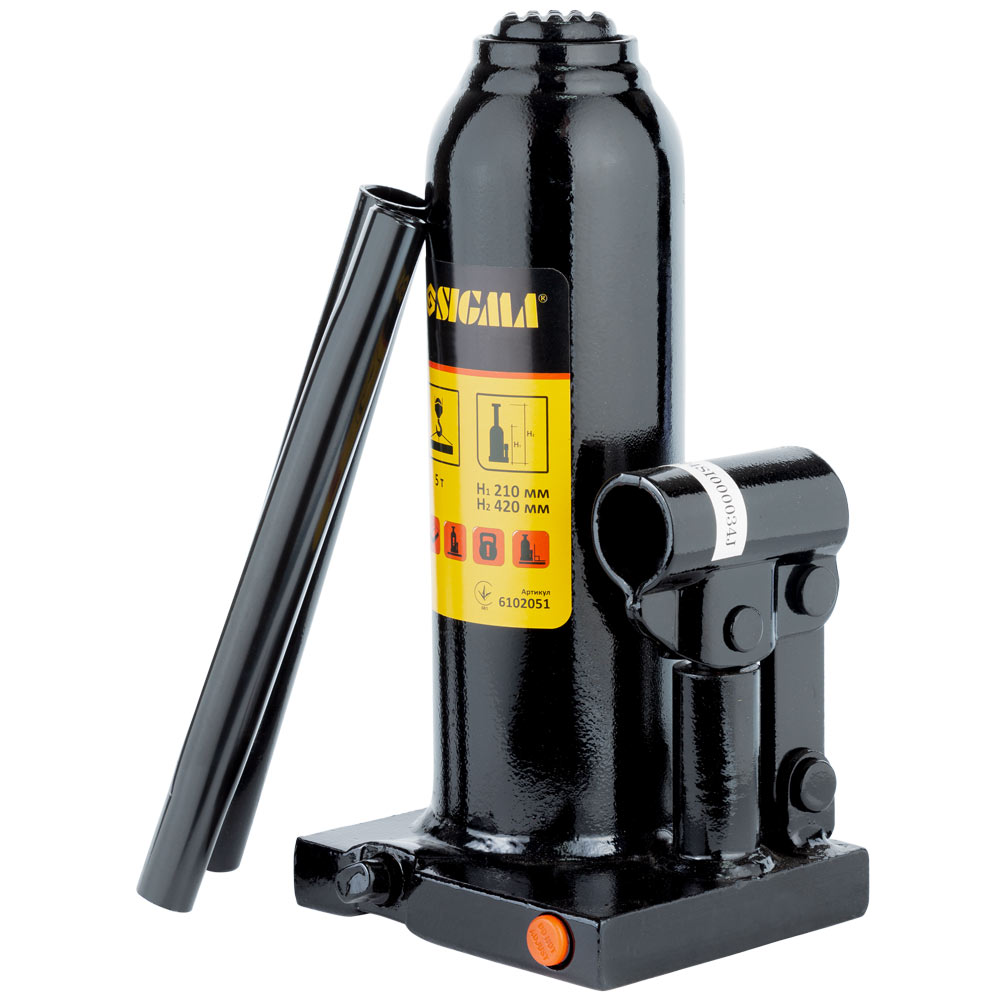 Домкрат гидравлический бутылочный 5т H 210-420мм (кейс) SIGMA (6102051) отличает простота конструкции и удобного эксплуатации, что расширяет область его применения и позволяет эффективно выполнять работы любой сложности. Его активно используют для монтажа и демонтажа в любой отрасли (машиностроение, строительство и т.д.), он пригоден для ремонта автомобилей, колесных пар железнодорожных вагонов, а также в качестве силового узла прессов, трубогибов, труборезов и другого подобного инструмента.