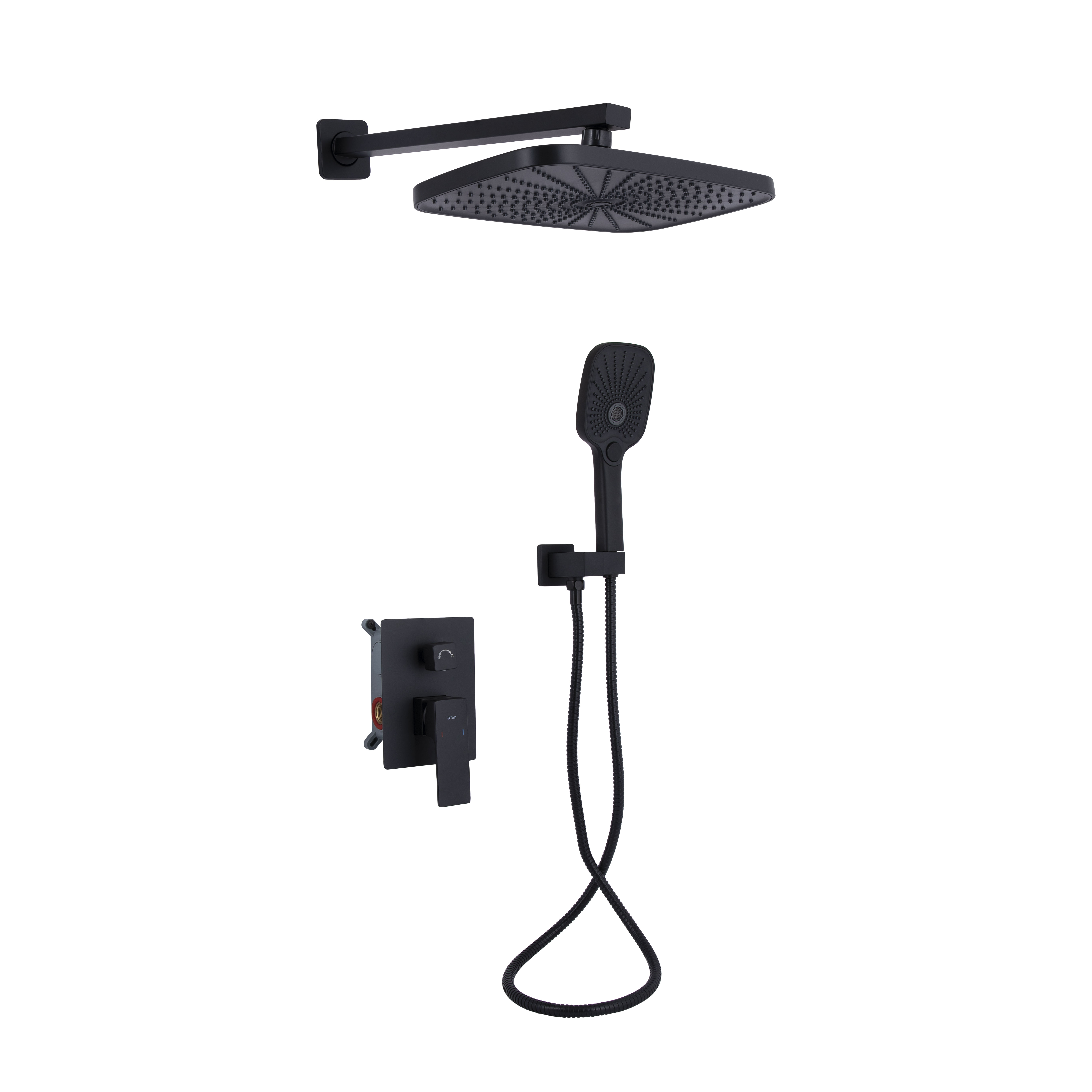 Душевая система Qtap Gemini скрытого монтажа на два потребителя, черная матовая