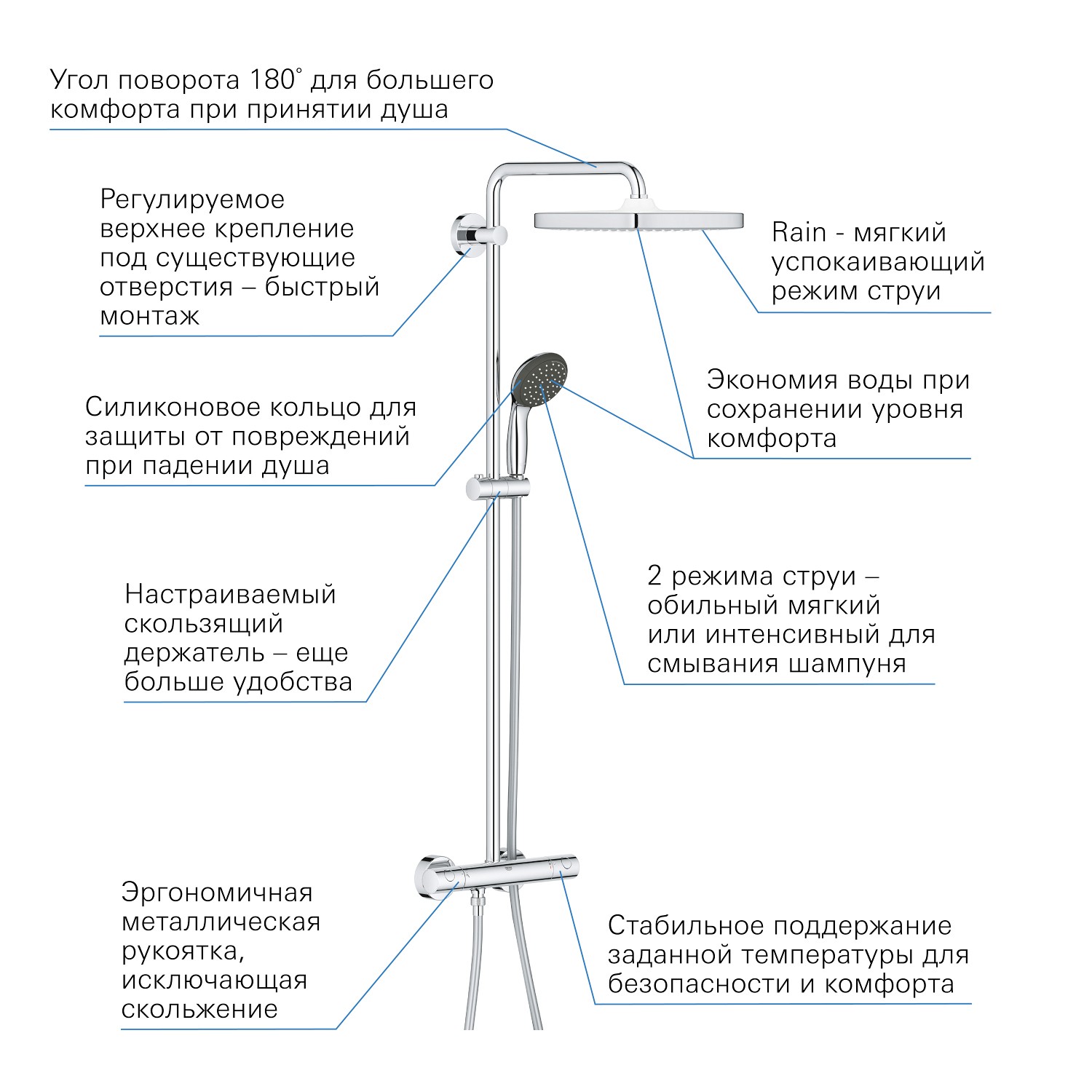 Описание Термостатическая душевая система Grohe Vitalio Start 250 Cube 26697000 код товару CV030605