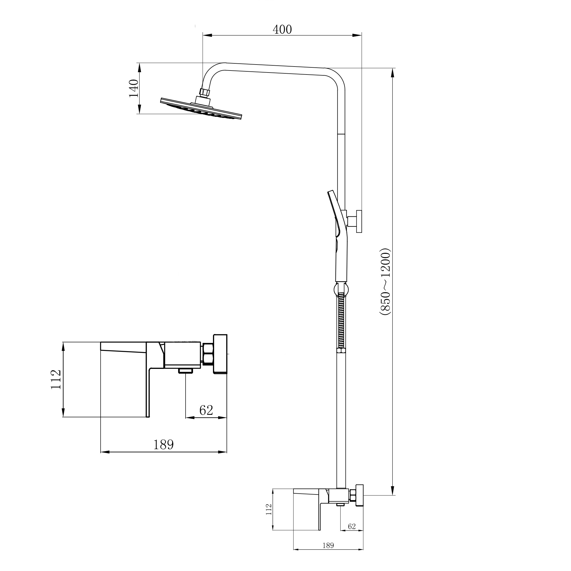 Высота душевой стойки, мм