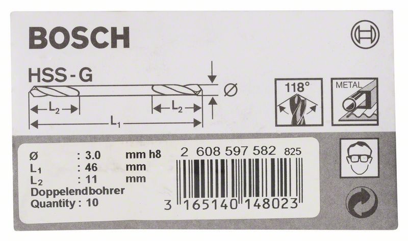 Характеристики Двусторонние сверла 3 x 11 x 46 мм BOSCH код товару 2608597582