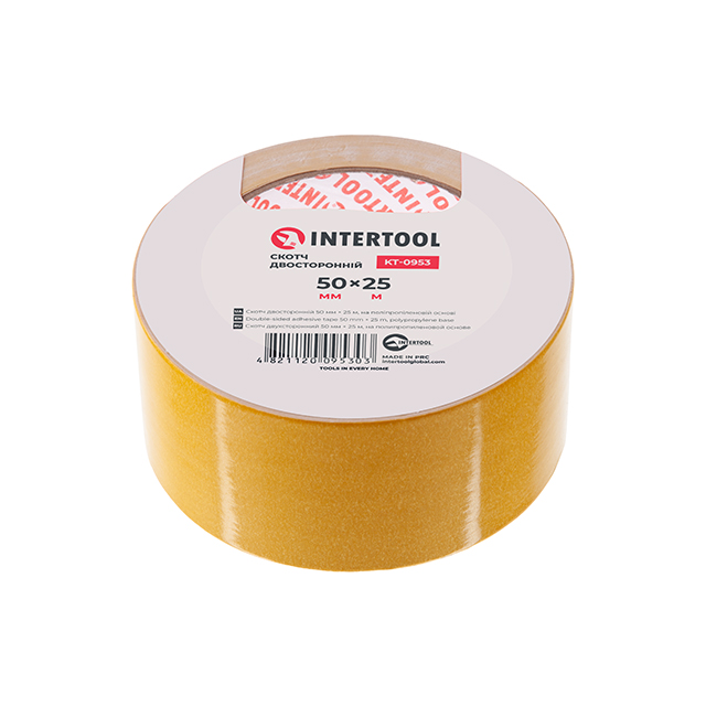 Характеристики Двусторонний скотч 50 мм*25 м на полипропиленовой основе INTERTOOL код товару KT-0953