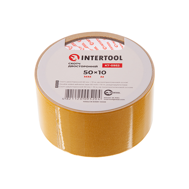 Характеристики Двусторонний скотч 50мм*10м полипропиленовый INTERTOOL KT-0952 код товару KT-0952