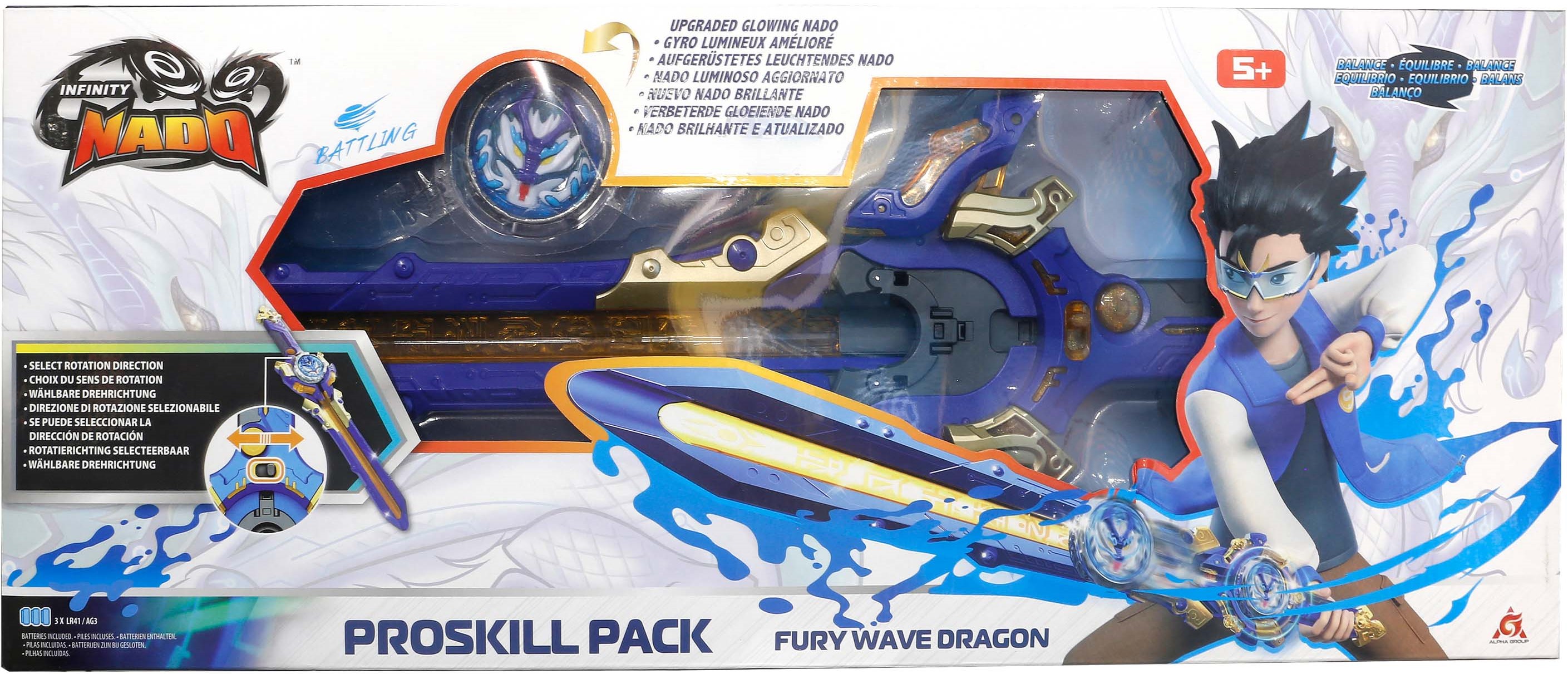 Infinity Nado VI серії Proskill Pack – дзиґа нового VI покоління зазнала значних вдосконалень, завдяки яким подарує незабутні враження від ще більш видовищних і цікавих поєдинків. Абсолютно нова система запуску дзиґи на арену реалізована за допомогою епічного лаунчера у формі меча, пускова система якого забезпечить контрольований швидкісний старт.