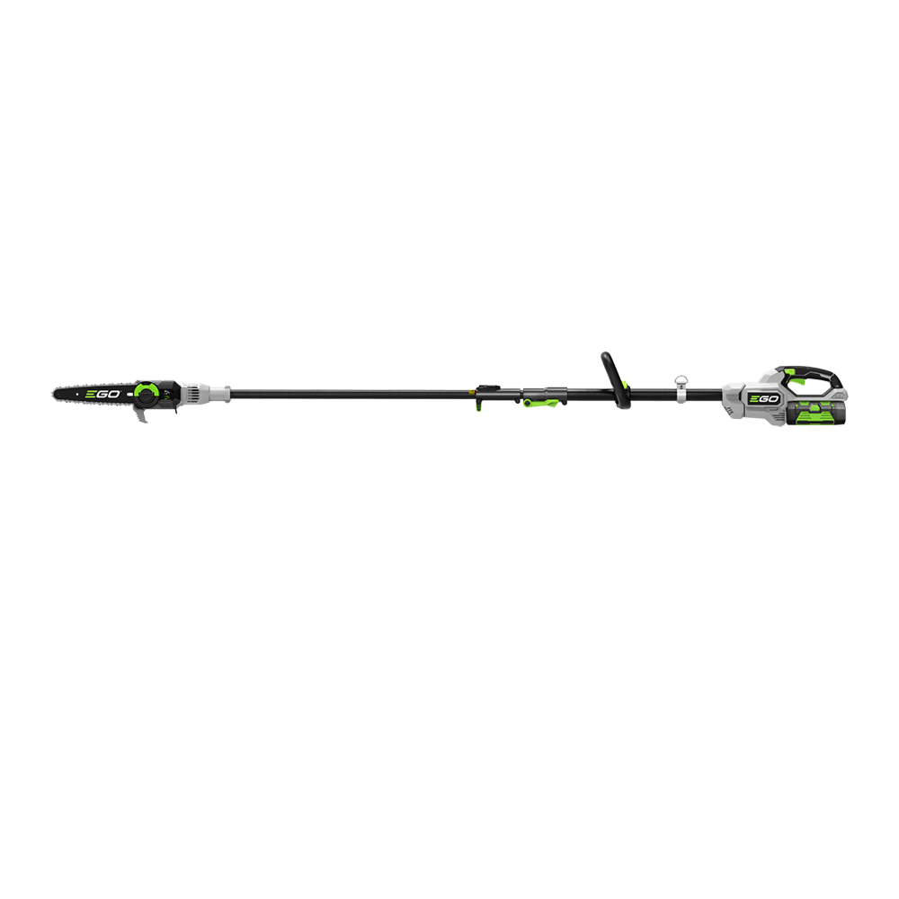 EGO PS1003E KIT - акумуляторний висоторіз професійного класу, що використовується для обрізки крони дерев і кущів. Призначений для використання комунальними господарствами, садівниками та ландшафтними дизайнерами. Інструмент обладнаний безщітковим двигуном постійного струму і телескопічною штангою з вуглеволокна для максимального полегшення ваги. Висоторіз живиться від універсальних акумуляторів EGO Power+ з напругою 56 В.